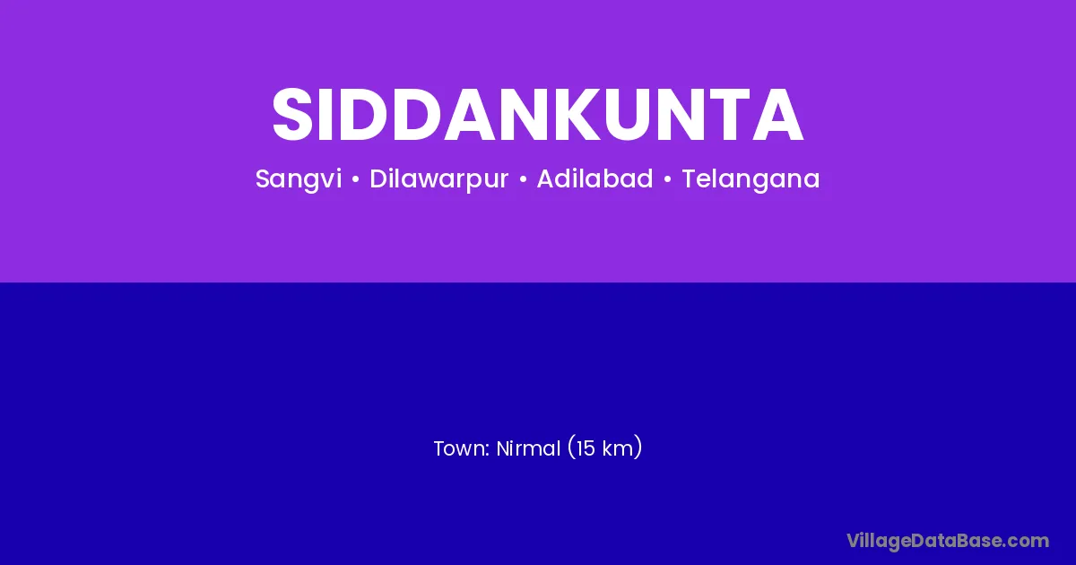 Nirmal (11 km) is the nearest town to Siddankunta village for major economic activities and is located approximately 11 km away.