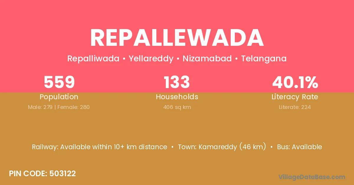 Bellampalle (12 km) is the nearest town to Repallewada village for major economic activities and is located approximately 12 km away.