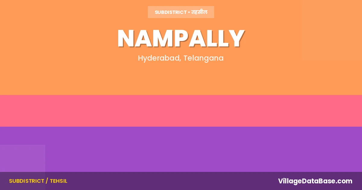Nampally is a town and Mandal in the Hyderabad district of the Telangana. In India, a Mandal is a subdivision of a district responsible for the administration and revenue collection of a specific area within the district. Mandals play a crucial role in the local governance structure, contributing significantly to the development and administration of their communities.