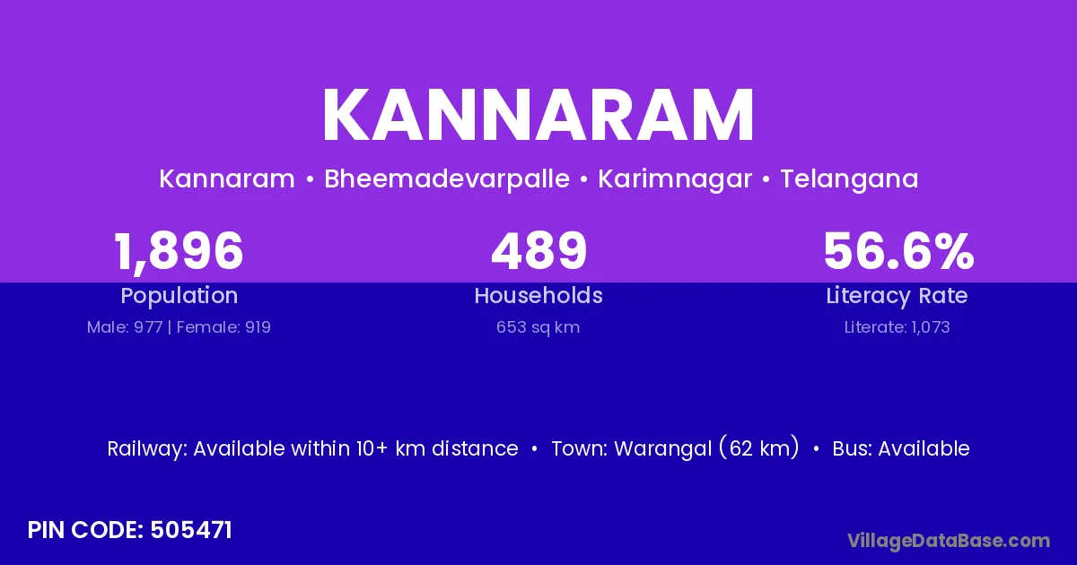 According to Census 2011 information, the village code of Kannaram village is 505471.