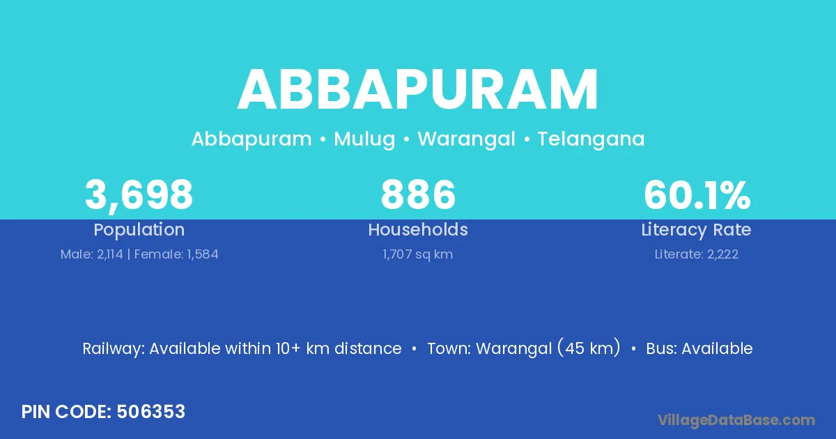 According to Census 2011 information, the village code of Abbapuram village is 505416.