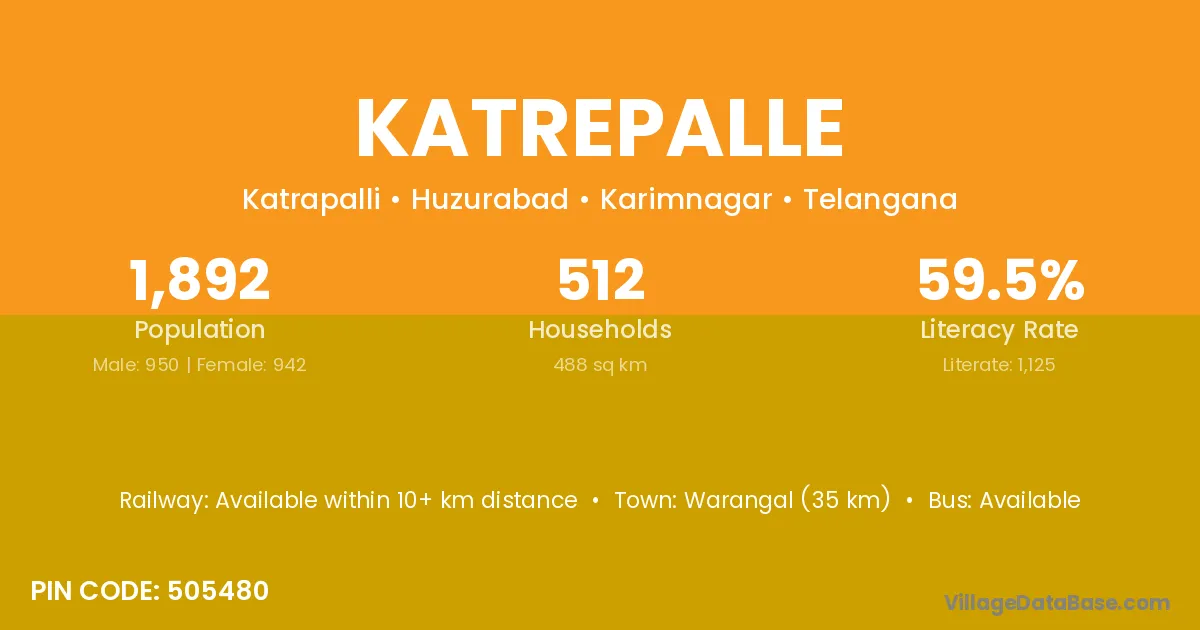 Warangal (35 km) is the nearest town to Katrepalle village for major economic activities and is located approximately 35 km away.