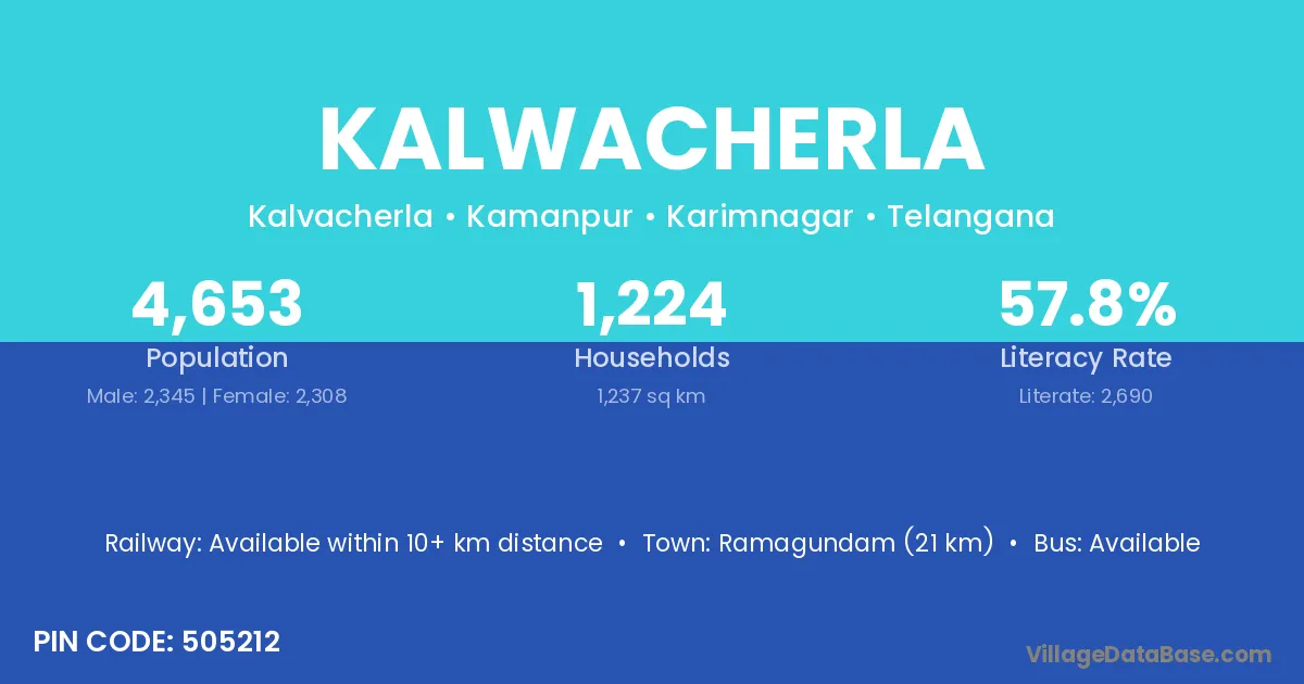 Ramagundam (21 km) is the nearest town to Kalwacherla village for major economic activities and is located approximately 21 km away.