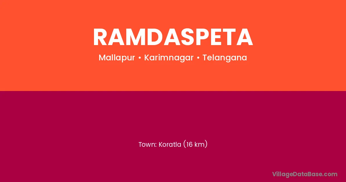 Koratla (16 km) is the nearest town to Ramdaspeta village for major economic activities and is located approximately 16 km away.