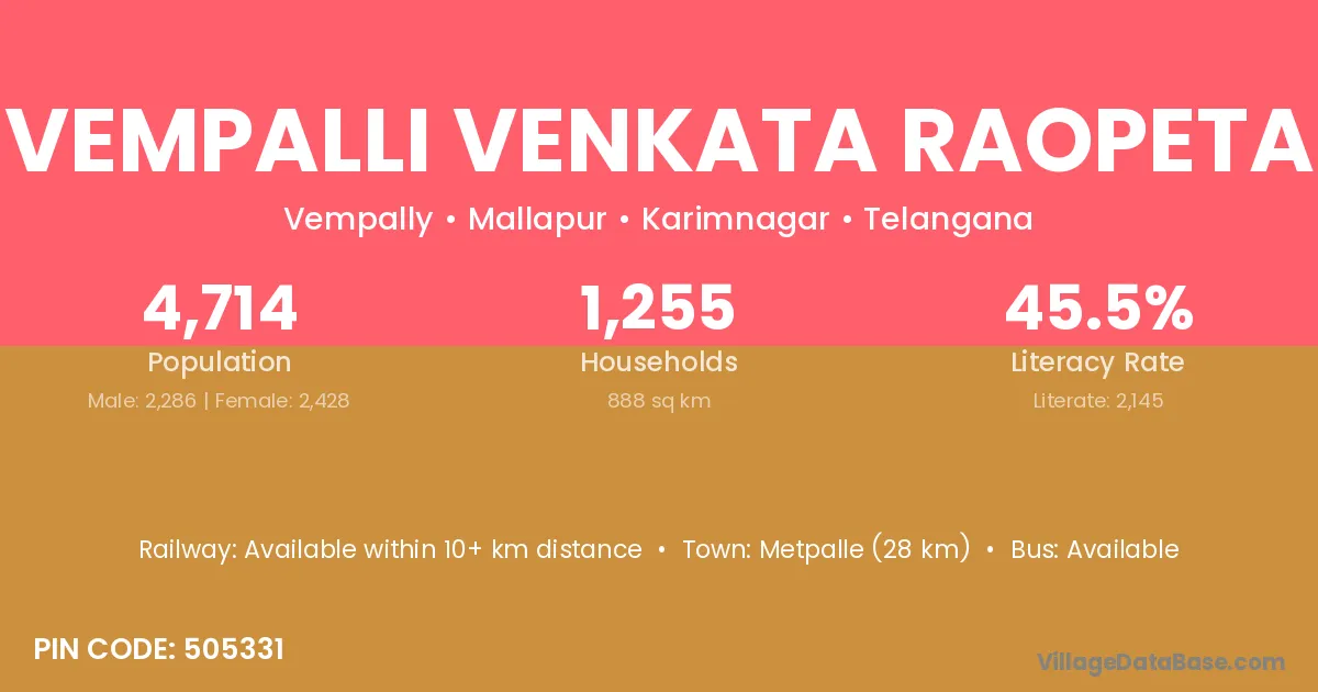 According to Census 2011 information, the village code of Vempalli Venkata Raopeta village is 505331.