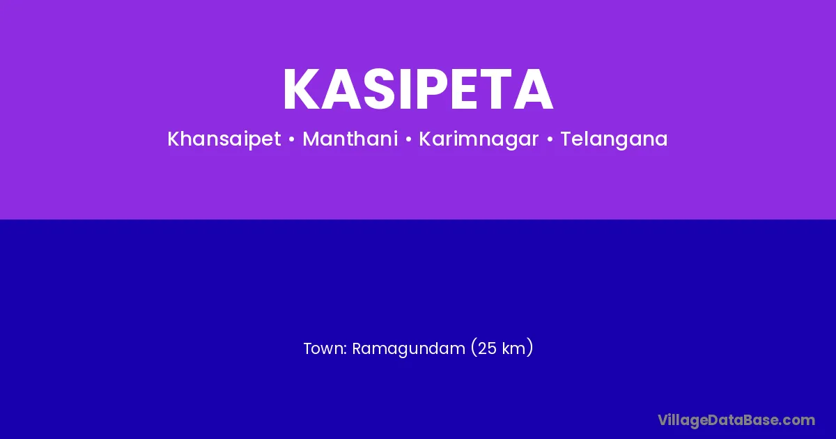 Ramagundam (25 km) is the nearest town to Kasipeta village for major economic activities and is located approximately 25 km away.