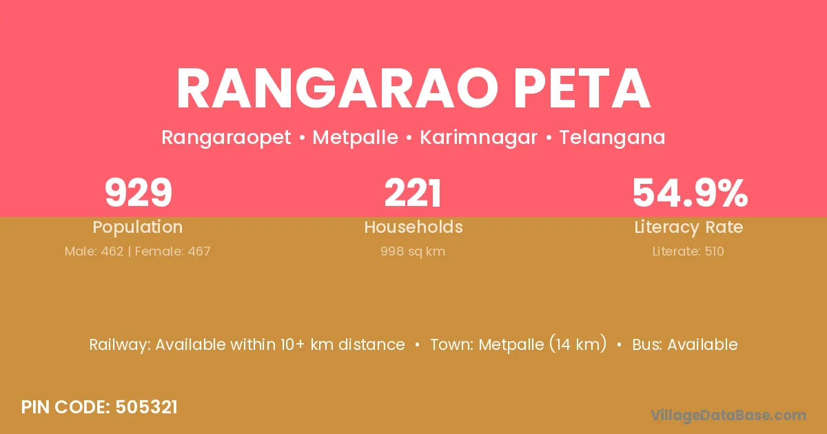 Rangarao Peta village has a total population of 929 people, of which 462 are males and 467 are females.
