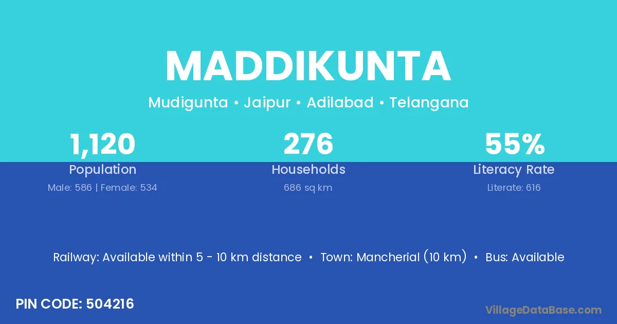Siddipet (32 km) is the nearest town to Maddikunta village for major economic activities and is located approximately 32 km away.