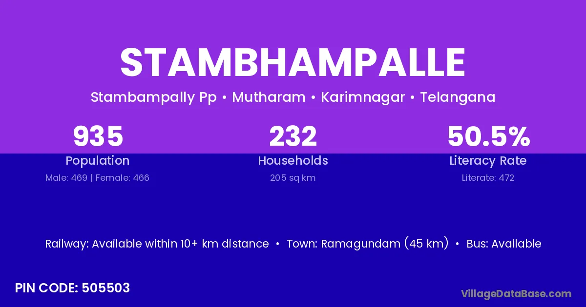 According to Census 2011 information, the village code of Stambhampalle village is 505503.