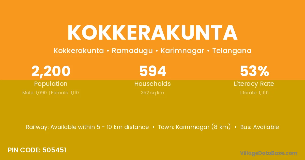 Karimnagar (8 km) is the nearest town to Kokkerakunta village for major economic activities and is located approximately 8 km away.