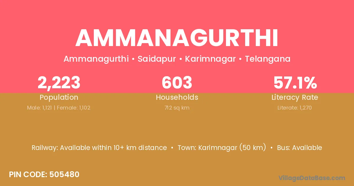 Karimnagar (50 km) is the nearest town to Ammanagurthi village for major economic activities and is located approximately 50 km away.