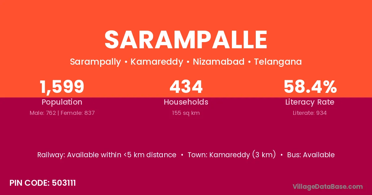 Sircilla (8 km) is the nearest town to Sarampalle village for major economic activities and is located approximately 8 km away.