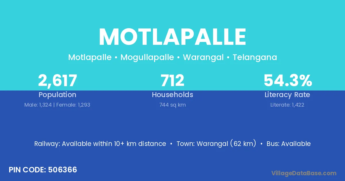 According to Census 2011 information, the village code of Motlapalle village is 505153.