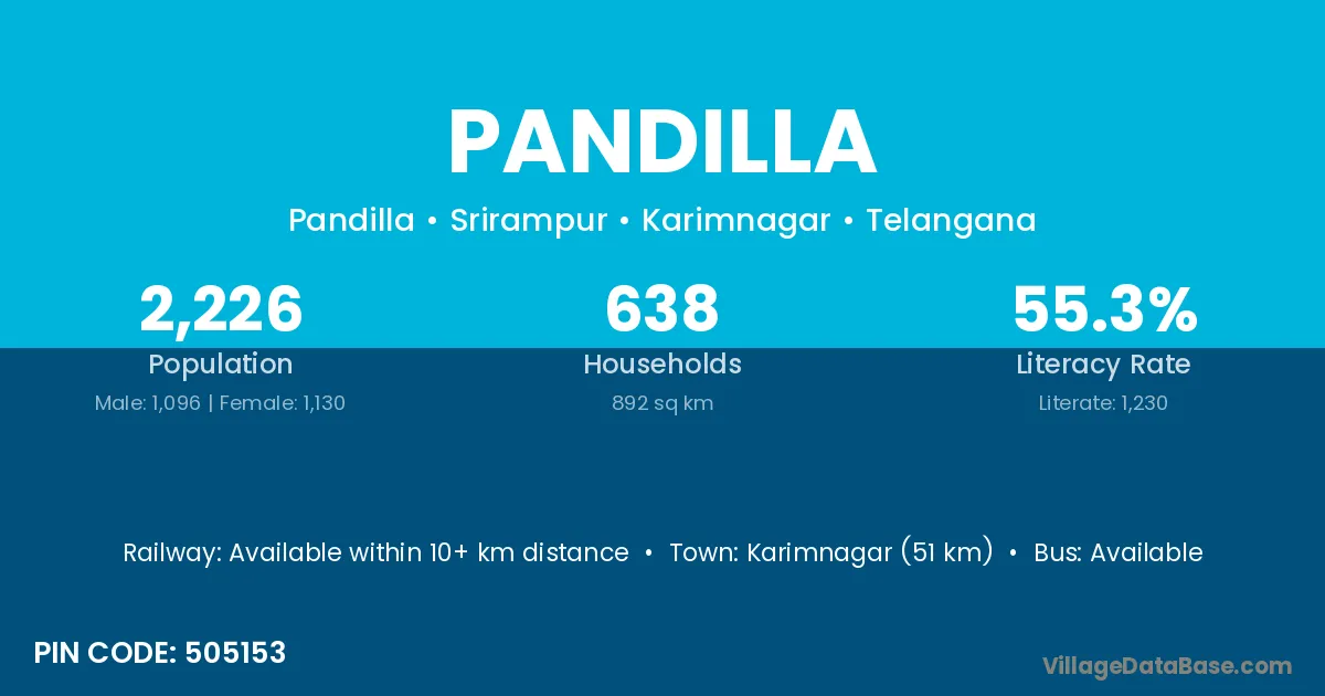 Karimnagar (51 km) is the nearest town to Pandilla village for major economic activities and is located approximately 51 km away.