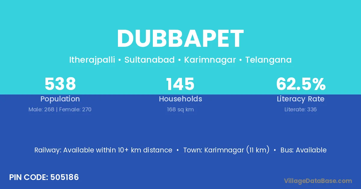 According to Census 2011 information, the village code of Dubbapet village is 505186.