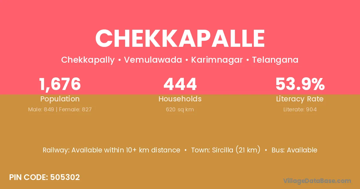 According to Census 2011 information, the village code of Chekkapalle village is 505302.