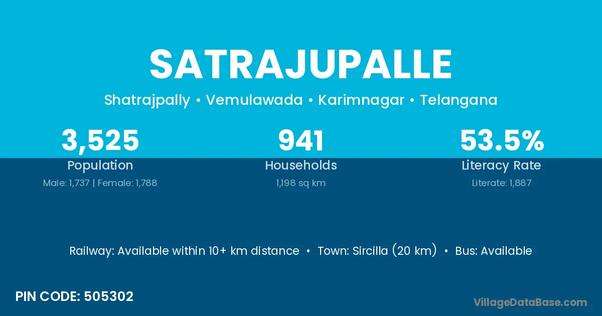 Sircilla (20 km) is the nearest town to Satrajupalle village for major economic activities and is located approximately 20 km away.