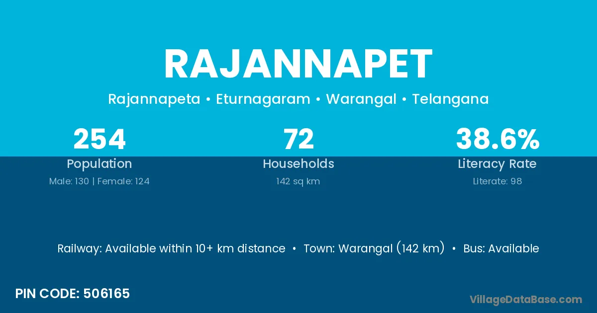 Sircilla (26 km) is the nearest town to Rajannapet village for major economic activities and is located approximately 26 km away.