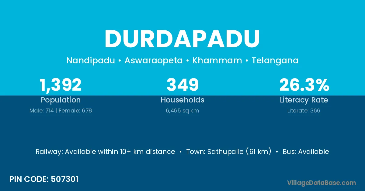 Sathupalle (61 km) is the nearest town to Durdapadu village for major economic activities and is located approximately 61 km away.