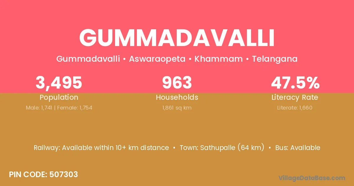 Sathupalle (64 km) is the nearest town to Gummadavalli village for major economic activities and is located approximately 64 km away.