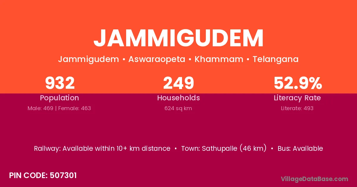 Jammigudem village has a total population of 932 people, of which 469 are males and 463 are females.