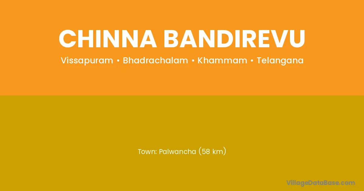 Palwancha (58 km) is the nearest town to Chinna Bandirevu village for major economic activities and is located approximately 58 km away.