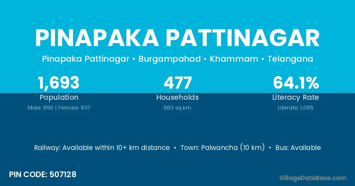 Pinapaka Pattinagar village has a total population of 1,693 people, of which 856 are males and 837 are females.