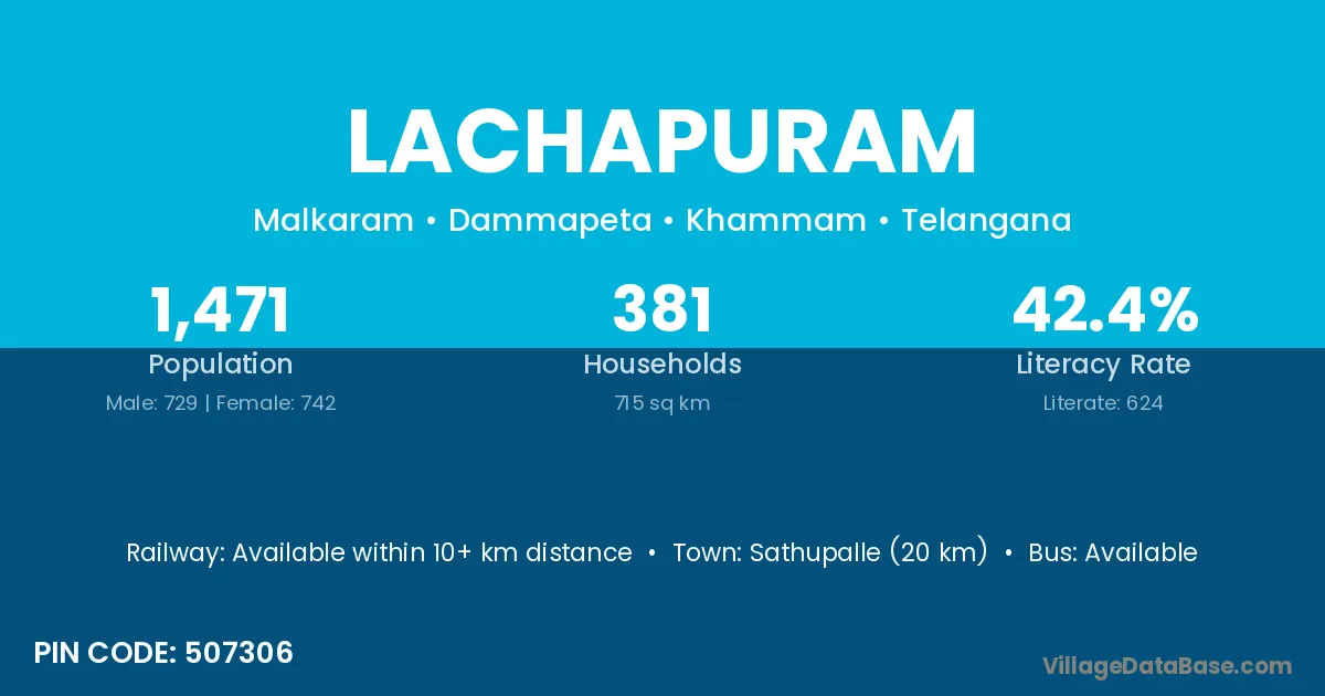 Sathupalle (20 km) is the nearest town to Lachapuram village for major economic activities and is located approximately 20 km away.