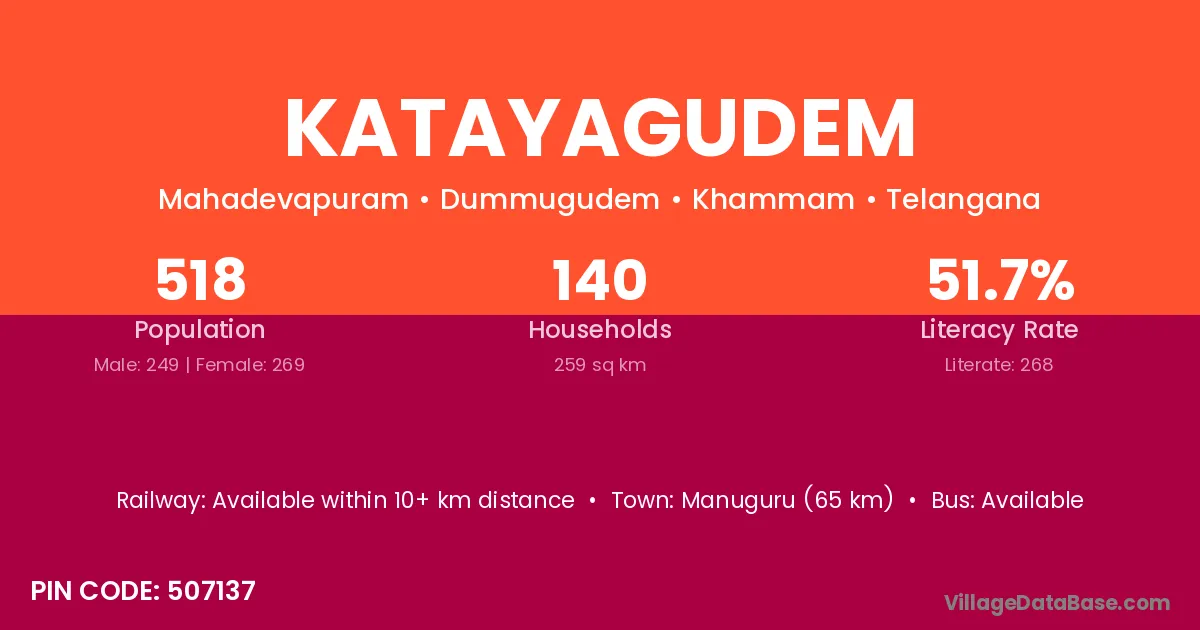 Katayagudem village has a total population of 518 people, of which 249 are males and 269 are females.