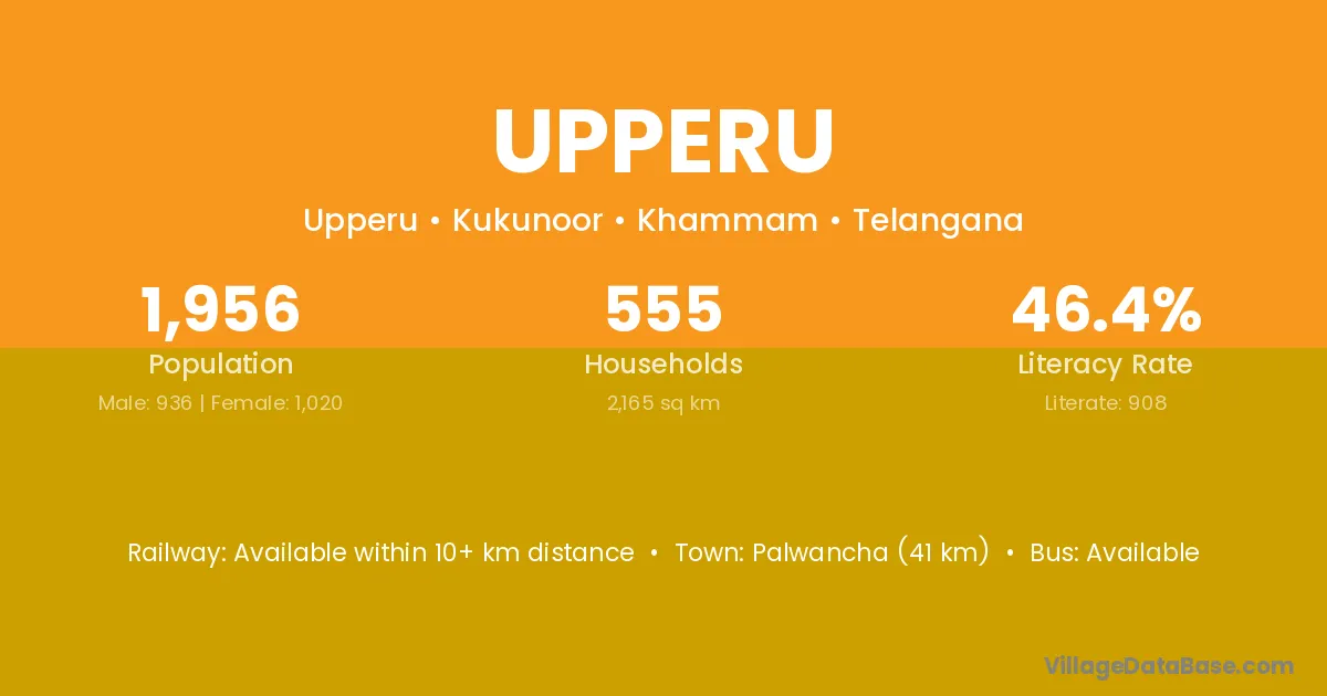Palwancha (41 km) is the nearest town to Upperu village for major economic activities and is located approximately 41 km away.