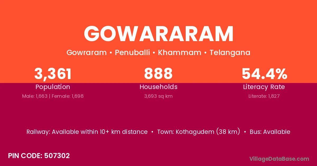 Kothagudem (38 km) is the nearest town to Gowararam village for major economic activities and is located approximately 38 km away.