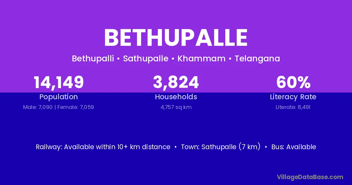 Sathupalle (7 km) is the nearest town to Bethupalle village for major economic activities and is located approximately 7 km away.