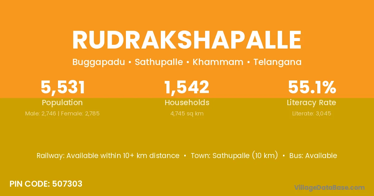 Sathupalle (10 km) is the nearest town to Rudrakshapalle village for major economic activities and is located approximately 10 km away.