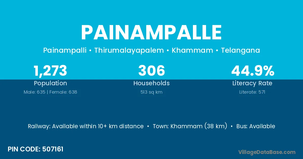 Khammam (38 km) is the nearest town to Painampalle village for major economic activities and is located approximately 38 km away.