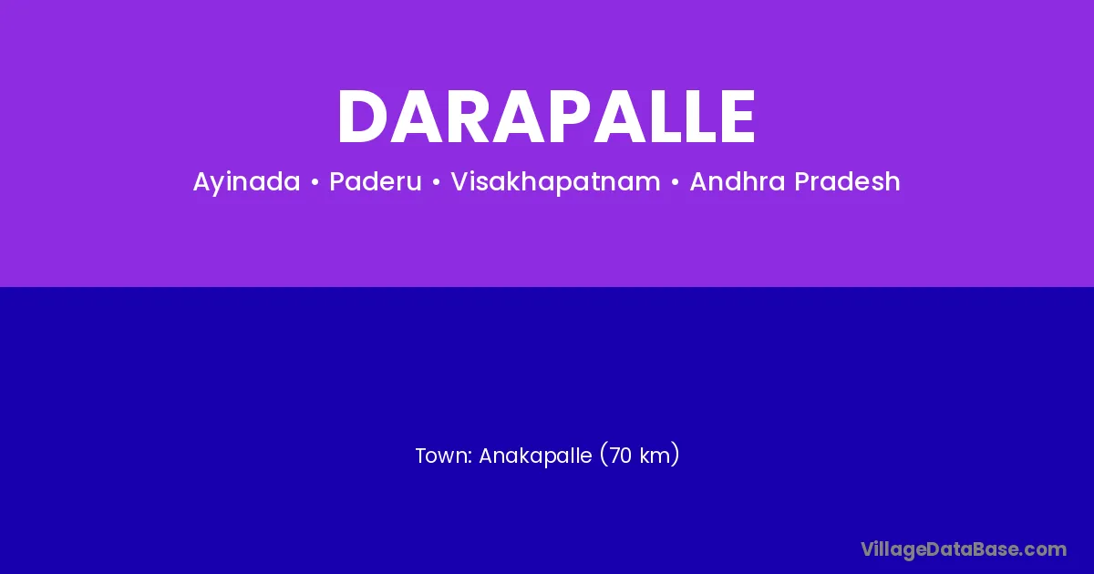 Palwancha (110 km) is the nearest town to Darapalle village for major economic activities and is located approximately 110 km away.