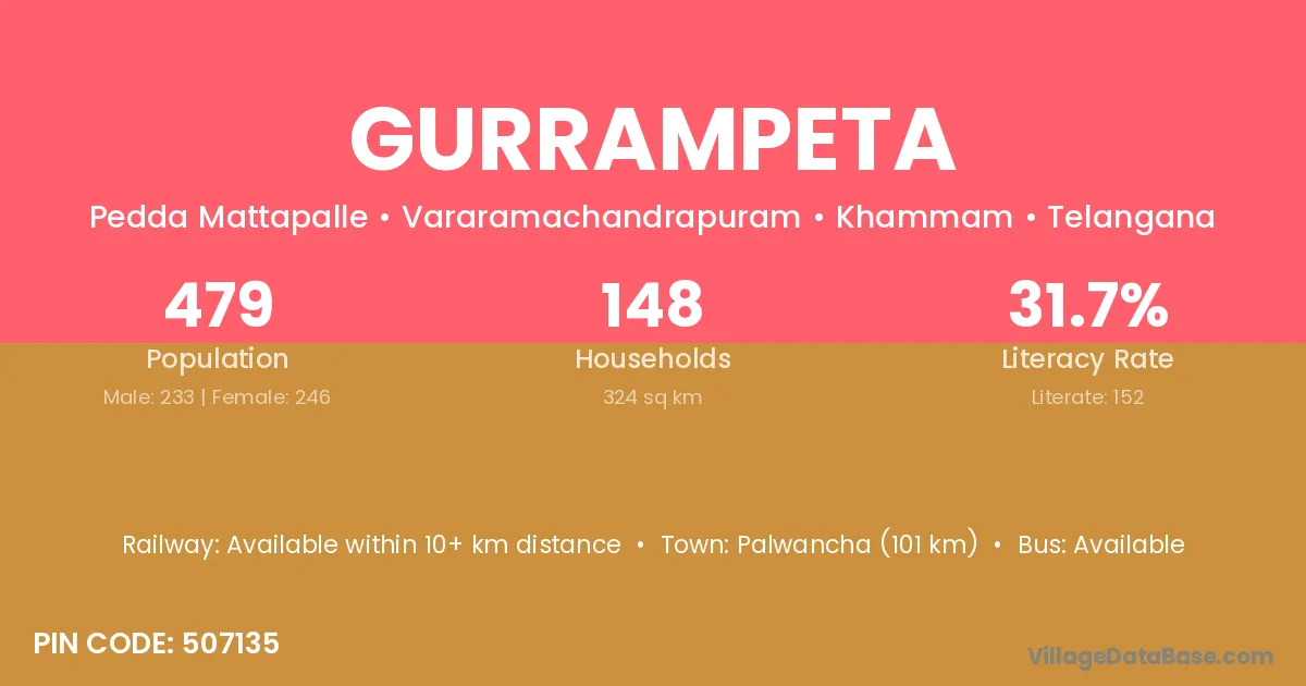 Gurrampeta village has a total population of 479 people, of which 233 are males and 246 are females.