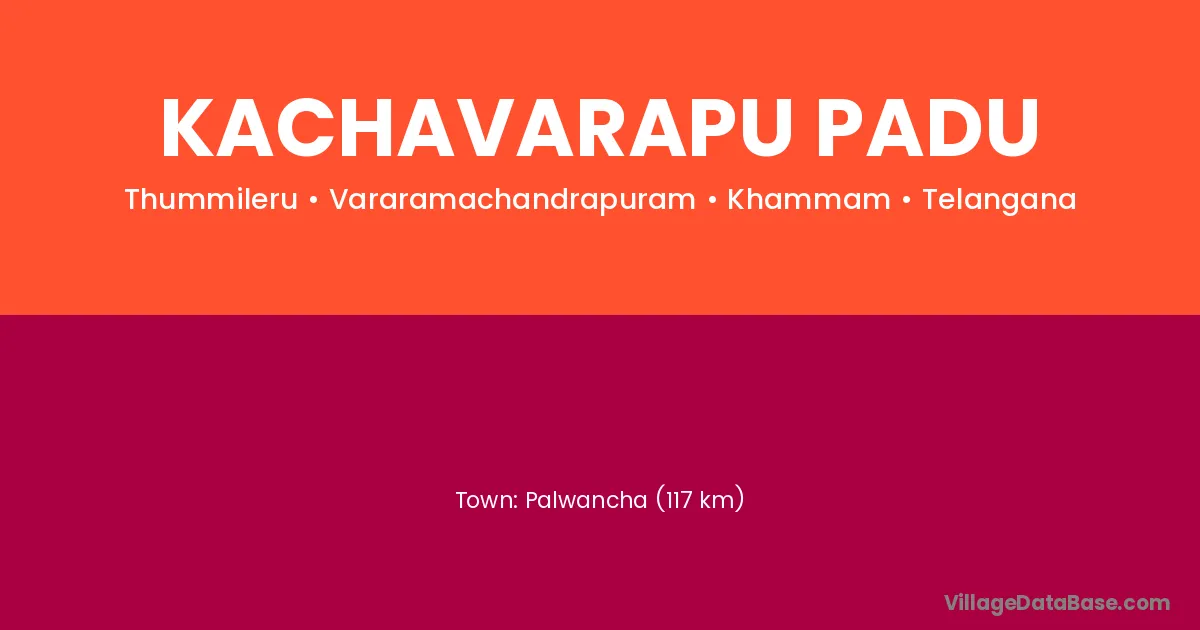 Palwancha (117 km) is the nearest town to Kachavarapu Padu village for major economic activities and is located approximately 117 km away.