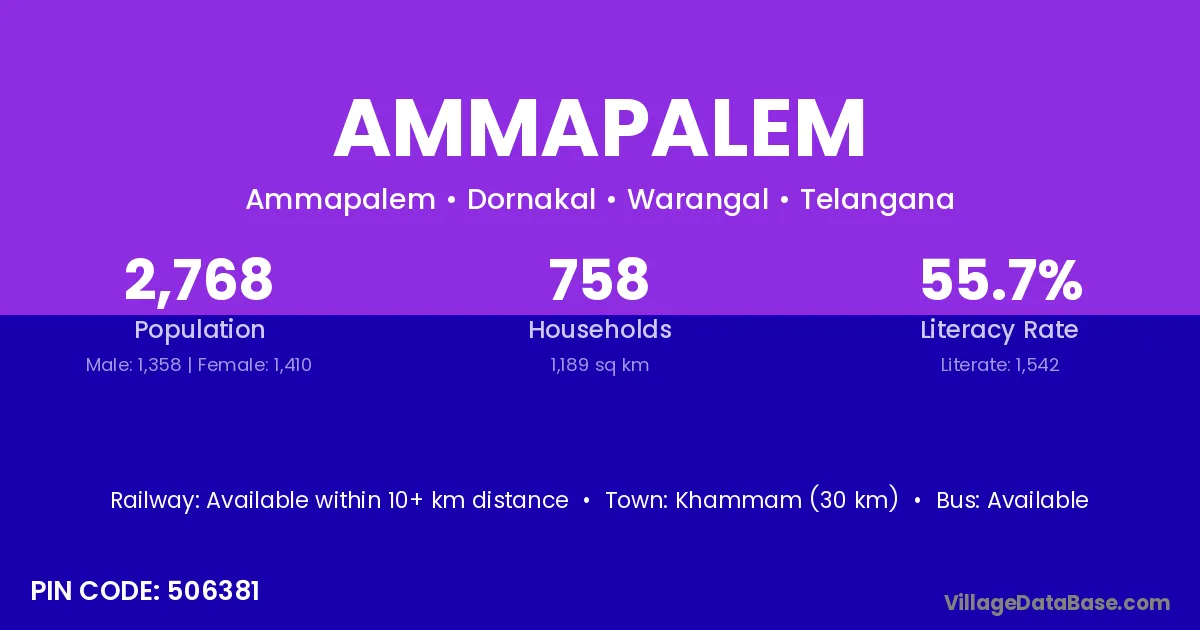 Sathupalle (23 km) is the nearest town to Ammapalem village for major economic activities and is located approximately 23 km away.