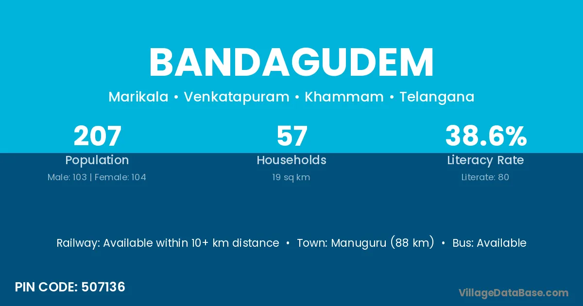 According to Census 2011 information, the village code of Bandagudem village is 507136.