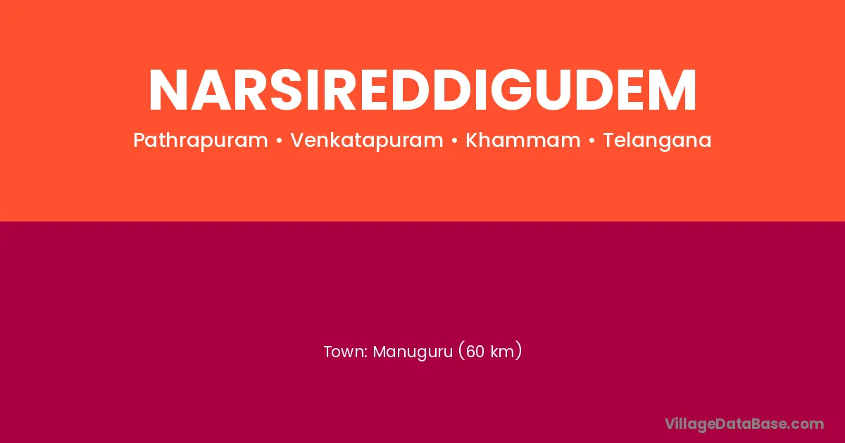 Manuguru (60 km) is the nearest town to Narsireddigudem village for major economic activities and is located approximately 60 km away.