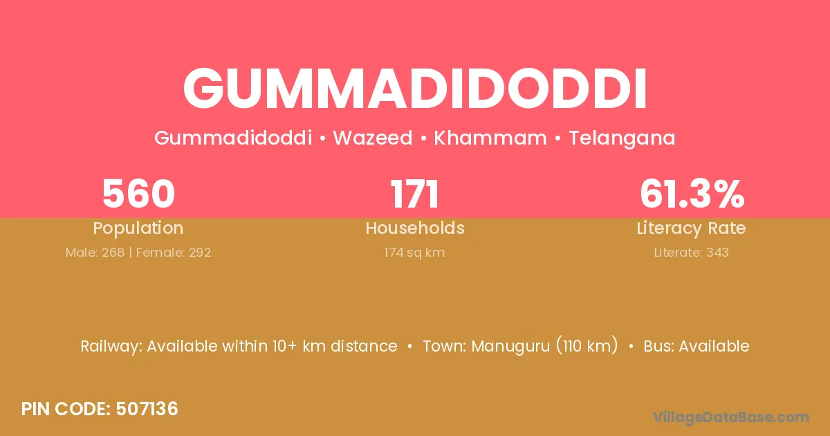 Gummadidoddi village has a total population of 560 people, of which 268 are males and 292 are females.