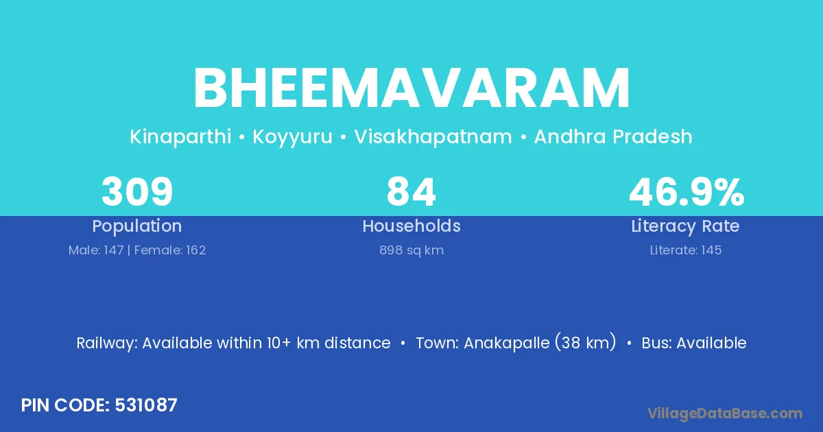 Khammam (80 km) is the nearest town to Bheemavaram village for major economic activities and is located approximately 80 km away.
