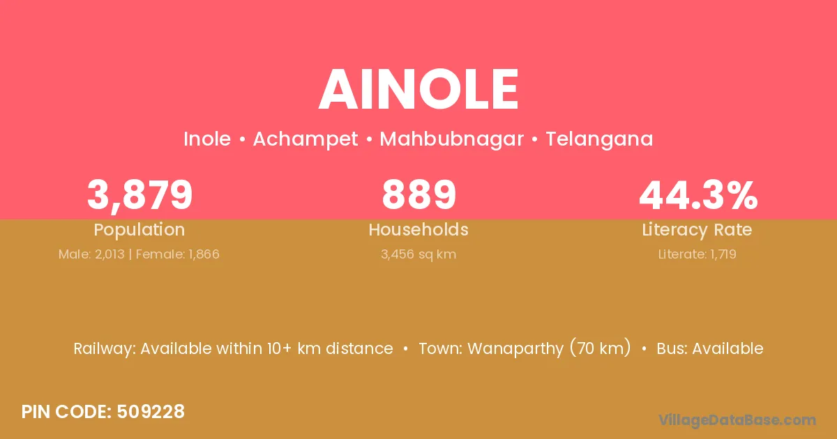 Wanaparthy (70 km) is the nearest town to Ainole village for major economic activities and is located approximately 70 km away.