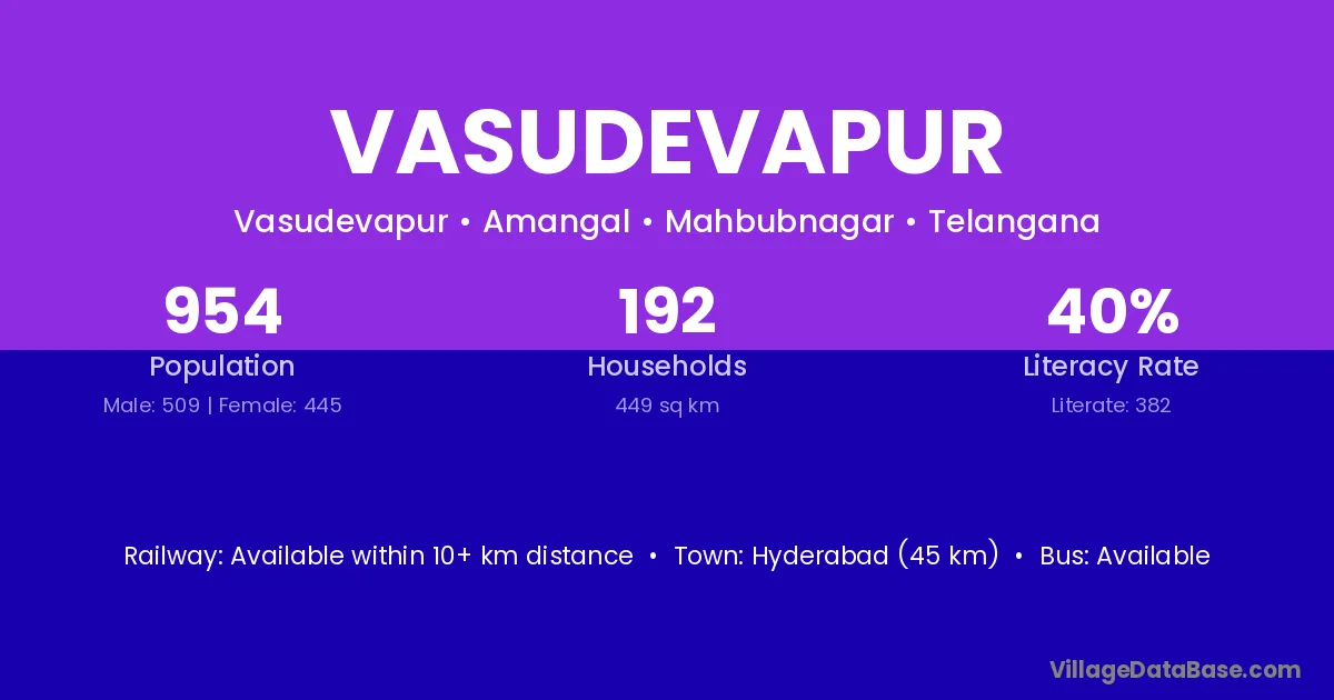 Hyderabad (45 km) is the nearest town to Vasudevapur village for major economic activities and is located approximately 45 km away.