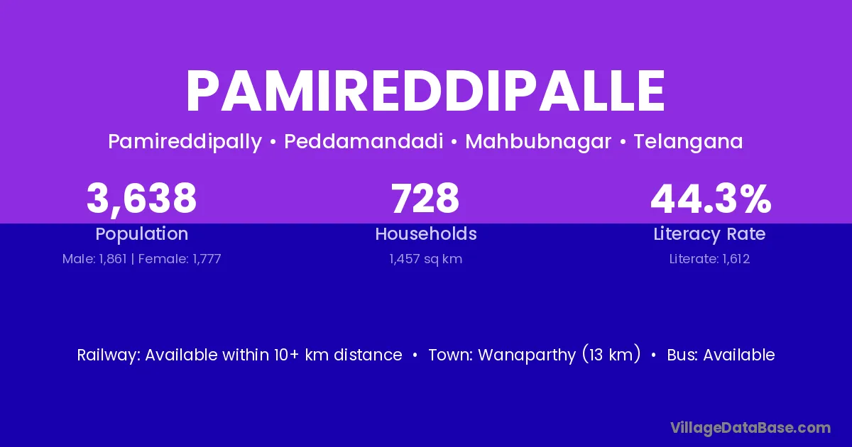 Wanaparthy (40 km) is the nearest town to Pamireddipalle village for major economic activities and is located approximately 40 km away.