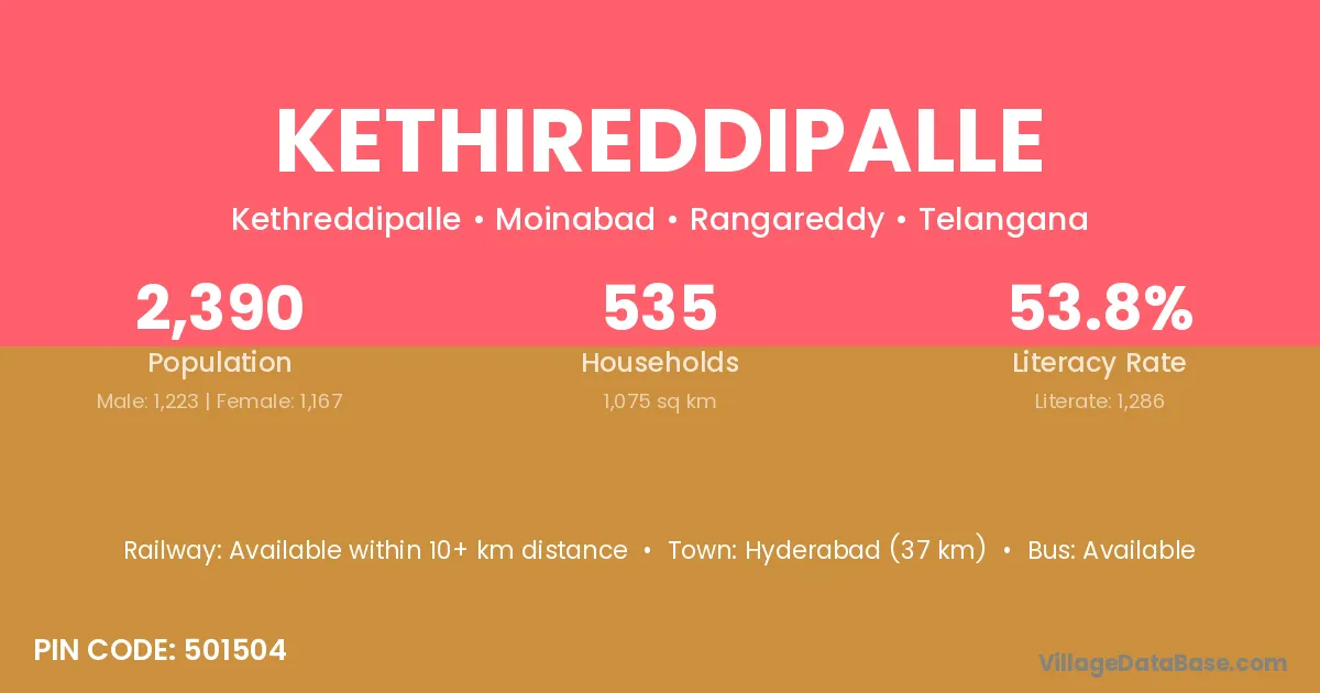 Mahbubnagar (30 km) is the nearest town to Kethireddipalle village for major economic activities and is located approximately 30 km away.