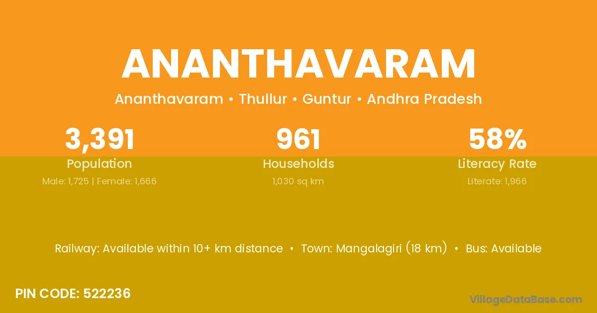 According to Census 2011 information, the village code of Ananthavaram village is 509401.