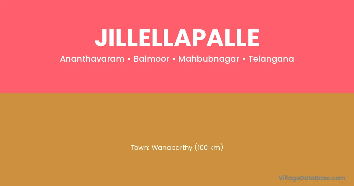 Wanaparthy (100 km) is the nearest town to Jillellapalle village for major economic activities and is located approximately 100 km away.