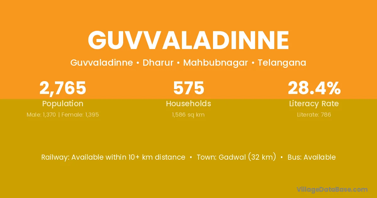 Gadwal (32 km) is the nearest town to Guvvaladinne village for major economic activities and is located approximately 32 km away.