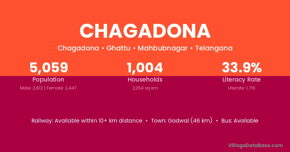 Gadwal (46 km) is the nearest town to Chagadona village for major economic activities and is located approximately 46 km away.